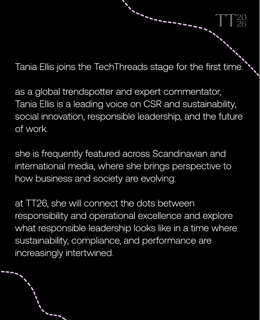 On May 12, 2026, Tania Ellis takes the TechThreads stage for the first time.